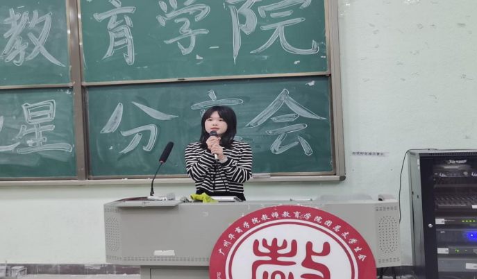 第六位进行分享的是“技能之星“18级学前教育3班的陈依晴师姐,在自我介绍之后分享了考证方面以及获奖情况的经验,还有自己教资面试的经验分享。表达了要具备更多的技能,才能在竞争中拥有更大的优势,可以让我们在人生事业中走得更高更远。