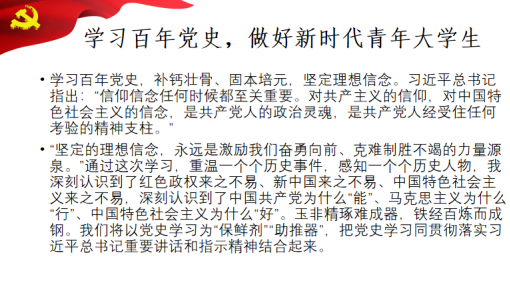 其次,她还在课堂上带同志们回顾了中国共产党成立的背景以及发展历程,帮助同志们更加深刻地认识中国共产党成立的艰辛。她强调,我们应以革命先辈为榜样,加强党性锤炼和深入开展党史学习,做到学史明理、学史征信、学史崇德、学史力行,把学习党史作为一种习惯化,进一步树立“学党史、知党恩、跟党走”的决心,以实际行动彰显先锋本色,为实现中华民族伟大复兴的中国梦贡献自己的力量。