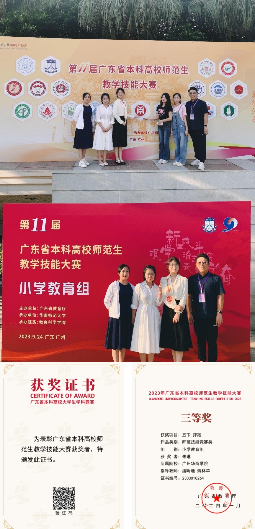 2.小学教育专业员工参加“第12届广东省本科高校师范生教学技能大赛”图片及获奖照片: