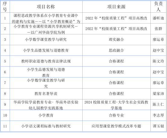 小学教育专业教师教研项目汇总(截止到2025.5月)