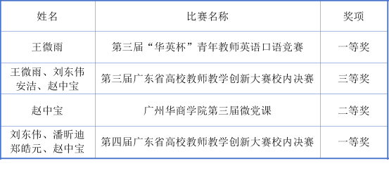 1.小学教育专业员工参加“第12届广东省本科高校师范生教学技能大赛”图及获奖照片: