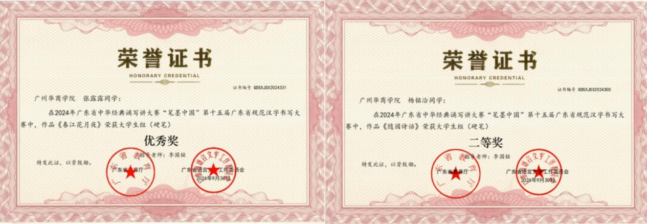 4.小学教育专业员工参加十五届广东省规范汉字书写大赛作品及获奖照片: