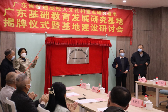 其后,郭银华执行董事长、支戈壁副董事长、王列耀副董事长和扈中平经理共同为广东基础教育发展研究基地揭牌。