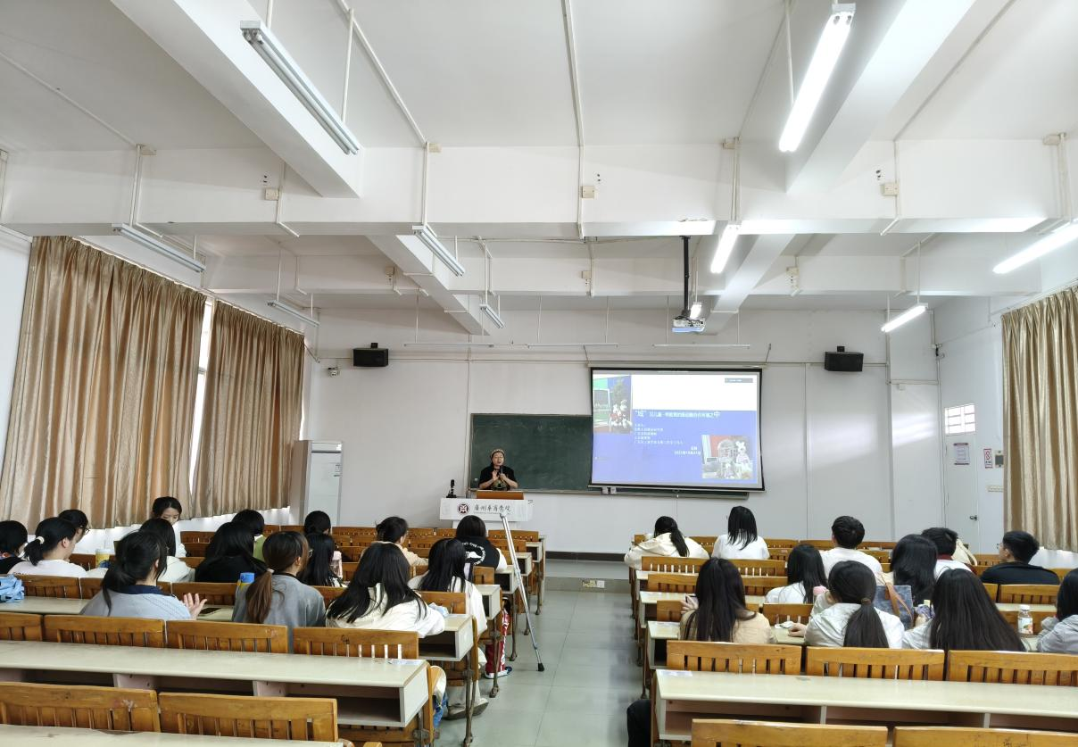 王秋园长深耕幼教领域多年,不仅是北京师范大学高级访问学者、广东省王秋学前名师工作室主持人,更荣获 2019 年度广东省公司产品成果基础教育类一等奖、2020 年度全国优质课例奖评选一等奖等多项殊荣,主编《幼儿园区域环创指导》等 19 部幼教专业书籍,在学前教育领域有着深厚的理论积淀和丰富的实践经验。讲座中,她打破传统理论灌输模式,以“遇见儿童”为核心主线,将抽象的环创理念融入具体案例,让在场同学直观感受区域环境创设的教育价值。