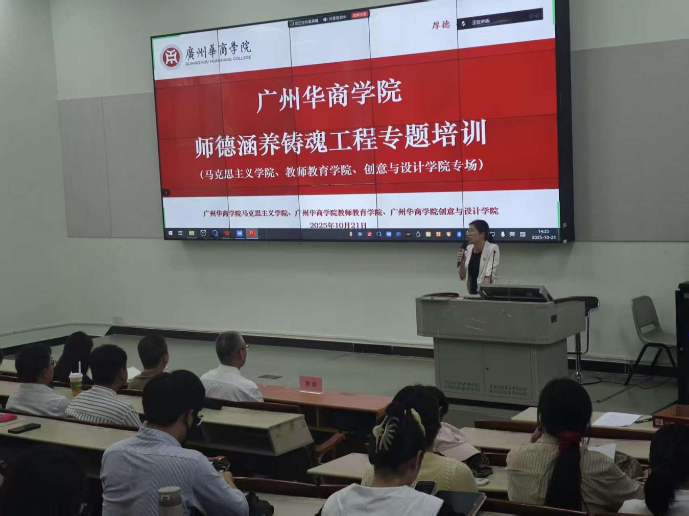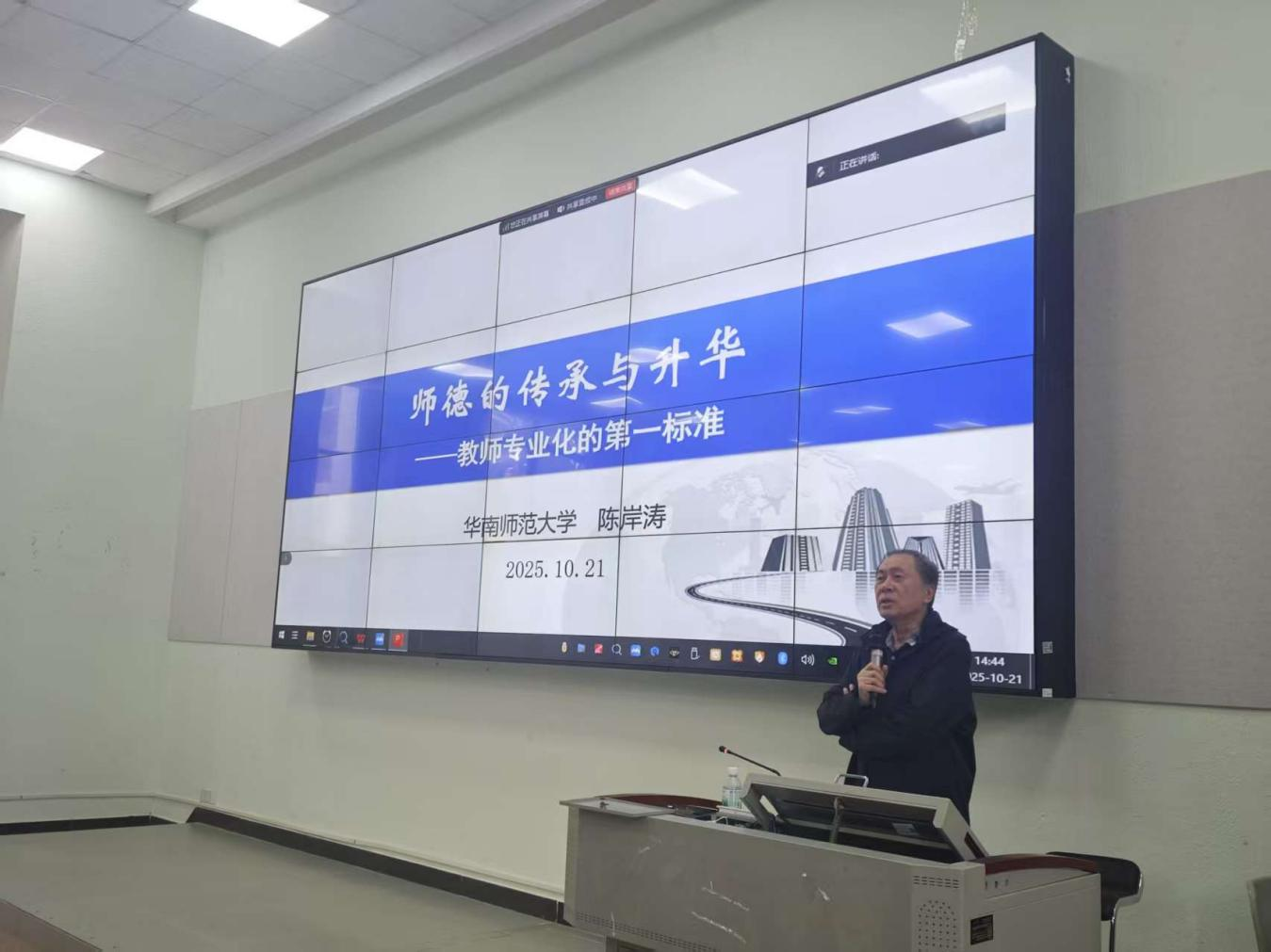 2025年10月21日下午,公司组织全体专任教师参与师德涵养铸魂工程专题培训。本次培训特邀华南师范大学教授陈岸涛主讲,以“师德的传承与升华——教师专业化的第一标准”为主题,为全体教师带来了一场兼具理论深度与实践指导意义的专题培训。