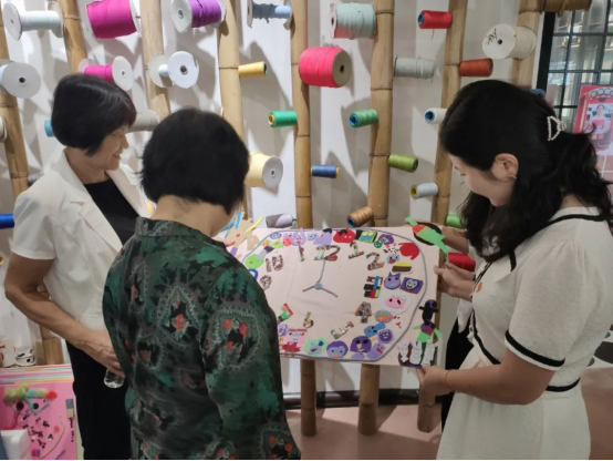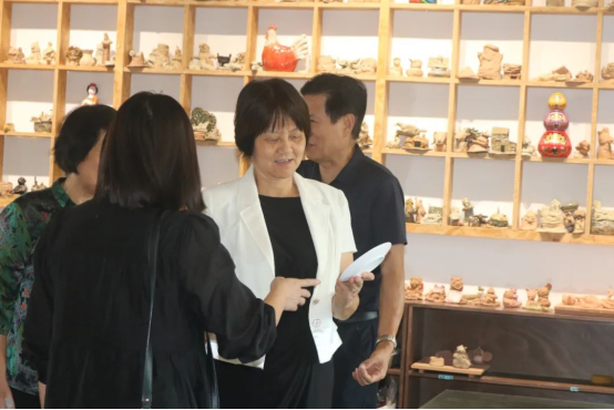 ▲校领导一行参观员工的手工艺作品