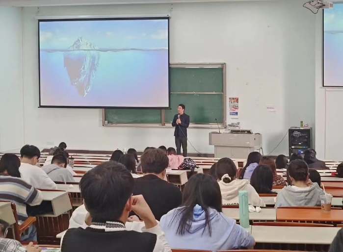 赵中宝老师给同学们提供了一个关于产品清楚的服务的逻辑闭环,这样有助于破开创业创新的层层壁垒,找到解决方案和精准定位下的客户。他由一张耳熟能详的冰山理论图,鼓励同学们发现自己水面下的价值和能量,以此来呼应讲座主题:“老员工创新创业的实践价值”。赵中宝老师认为,同学们作为老员工可以多尝试,允许自己试错,以创新创业为切入口,寻找属于自己的确定性。