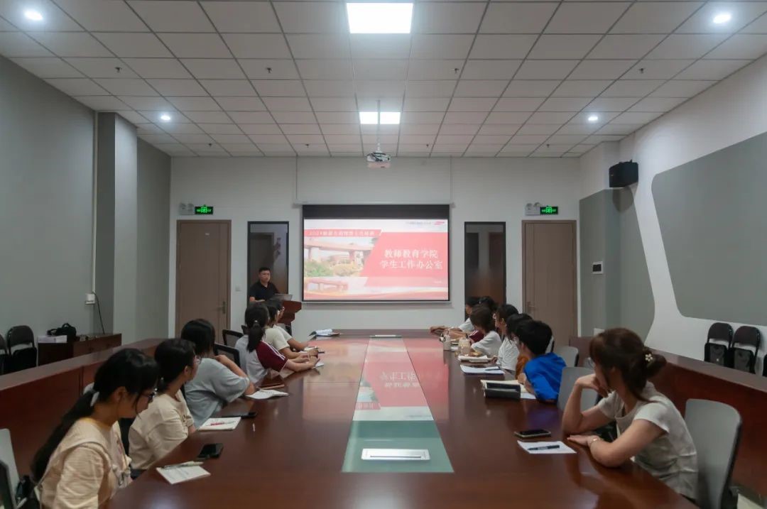 会上,徐炯锋老师就新生入学日常教育、服务、管理工作向全体助理班主任强调要提高站位、明确职责,做好新生的引路人。徐老师还就迎新前期准备工作进行了工作部署,叮嘱助理班主任们全心投入,助力新生顺利完成报到手续。