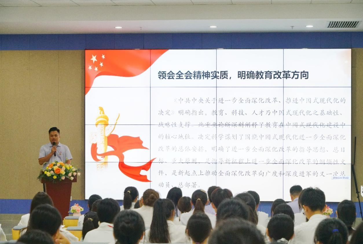 江庆基老师通过深入剖析全会精神实质、教育改革方向、素质教育强化策略、全面发展人才培育要点以及推进中国式现代化内涵,使同学们透彻理解教育与全面深化改革的关键意义,进而积极响应全会号召,切实践行新时代青年的使命担当。
