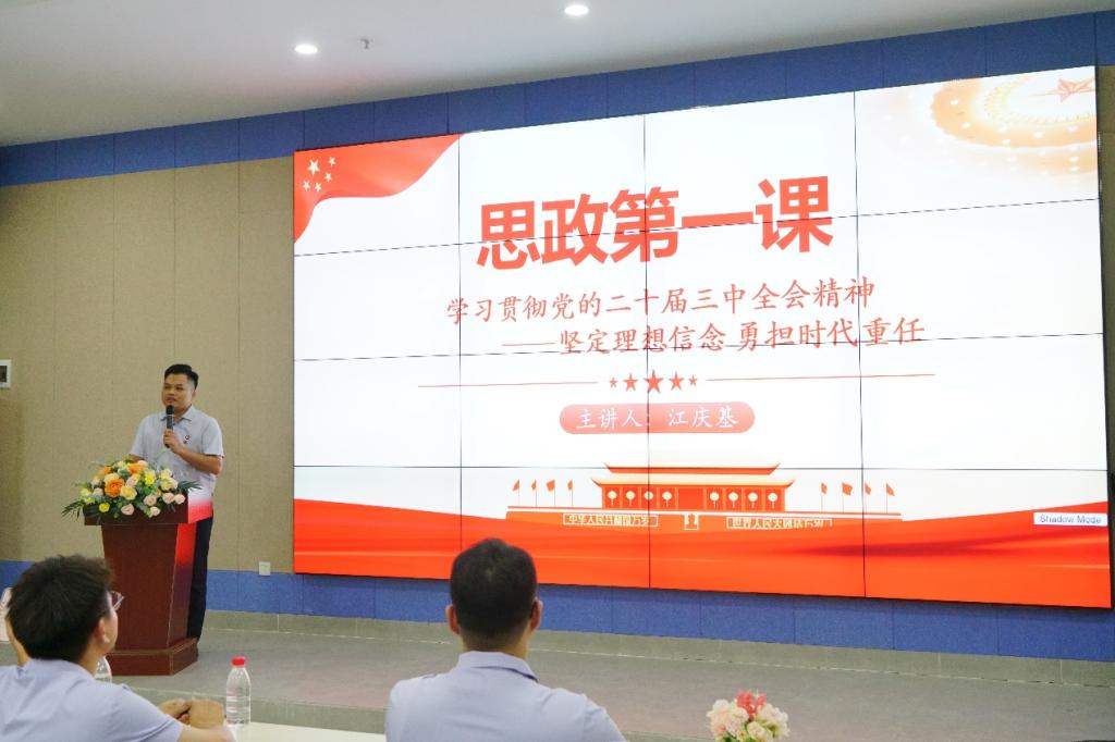 在肇庆校区,江庆基老师以“坚定理想信念,勇担时代重任”为题,向同学们讲解学习党的二十届三中全会的重要性,带领同学们回顾我国在经济、文化等方面取得的历史性成就,有力地激发了同学们的自豪感与幸福感,进一步增强了民族自信心和认同感。