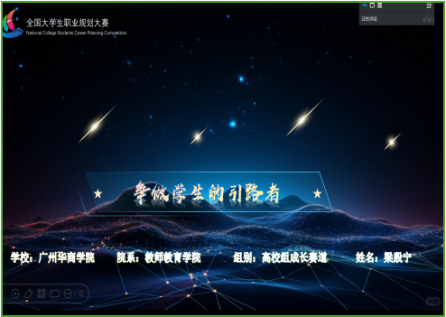 初赛到此就落下帷幕,同学们不仅对自己职业生涯的规划有了一定的深刻认识,还全面的了解自己的优劣、兴趣以及性格特点;大赛提供了一个广泛的平台来让同学们结实了许多志同道合的同学,相互交流学习,提高自己在职业工作上的业务能力。