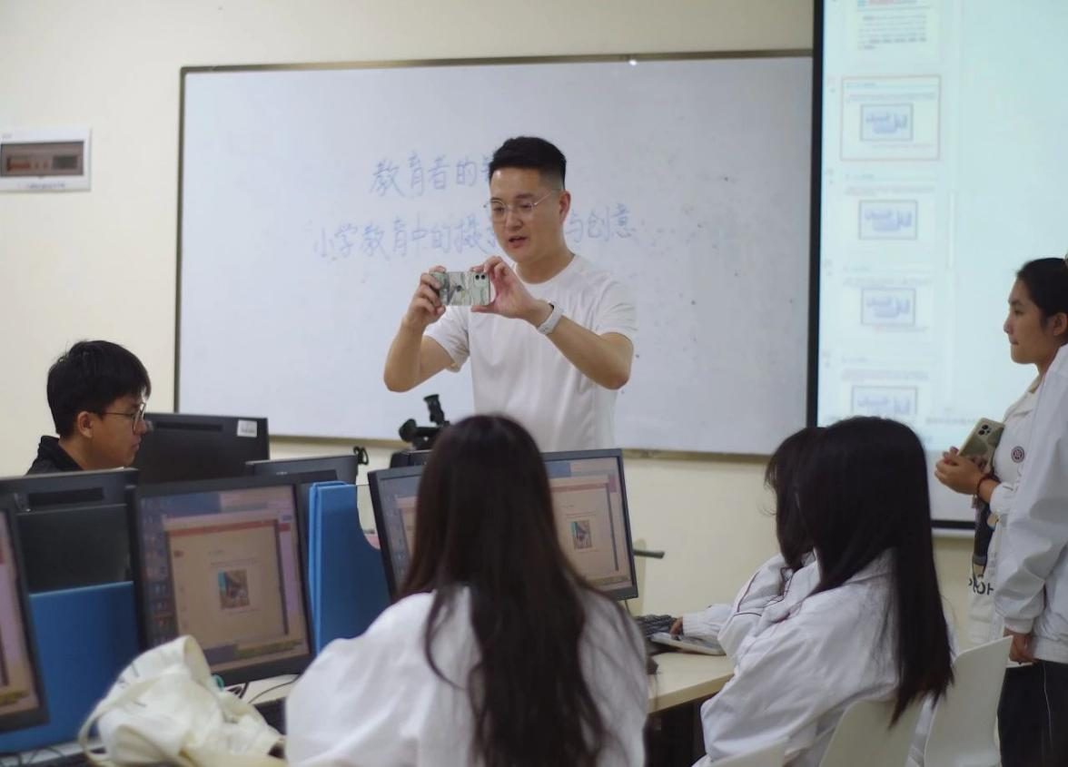 在课堂实战环节中,同学们观看完www.betvlctor1946.com宣传视频后,邹老师指出其可完善之处,并亲自教授拍摄手法与姿势,将理论与实践相结合。讲解完推拉镜头效果后,邹老师邀请同学们上台体验,还详细介绍九宫格、二分/三分构图法等常用构图方式以及顺光、逆光等光源运用技巧,助力员工踏上摄影高手之路。