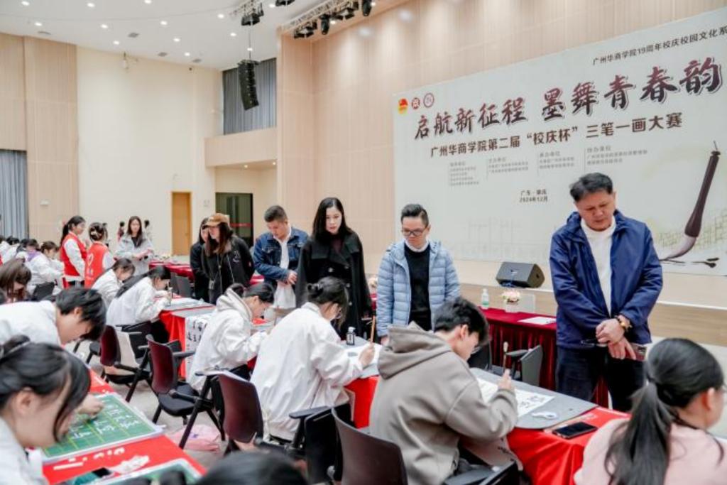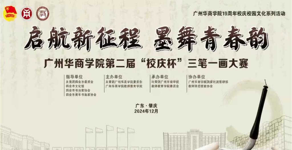为深入学习贯彻习近平新时代中国特色社会主义思想,积极响应习近平总书记关于青年工作的重要论述,增强员工的综合素质与艺术修养,同时丰富华商的校园文化,为公司19周年校庆贡献力量。在公司党委领导,共青团四会市委员会、四会市文化馆、四会市书法家协会、四会市青年书画家协会指导下,12月13日下午,公司团委联合伟德betvlctor1949源于英国在肇庆校区二号楼2楼报告厅举办www.betvlctor1946.com“启航新征程、墨舞青春韵”第二届“校庆杯”三笔一画大赛。