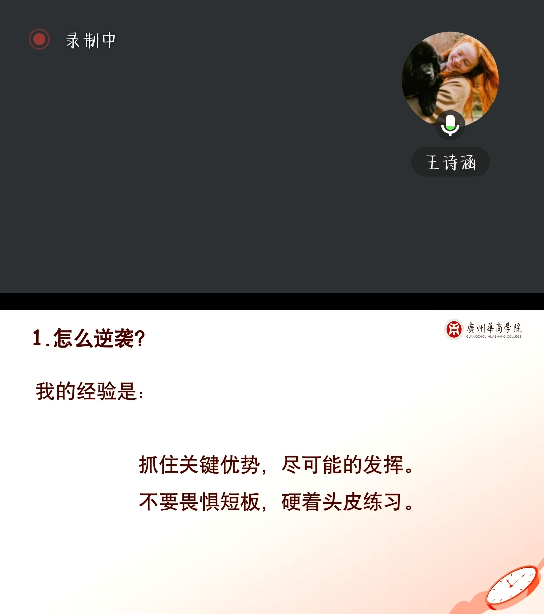 最后,洪紫静老师作总结发言,明确表示本次线上考研复试指导会虽临近尾声,但公司对同学们的复试帮扶与指导从未停止。公司将持续为通过初试的同学提供复试全流程精准指导,以高效务实的举措,为考研上线学子送去及时、有力的支持与助力。后续,公司将继续聚焦同学们的复试备考需求,通过精准学业指导、整合优质资源等方式,为同学们提供全方位、多层次的服务保障,全力护航每一位学子在复试中展现最佳状态、顺利圆梦研途。