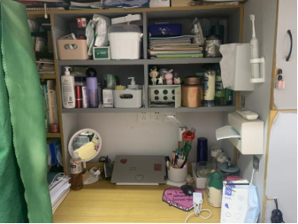还有个别宿舍杂物堆积,物品摆放杂乱
