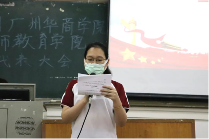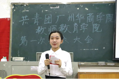 主持人宣读第一届委员会委员最终名单:朱娜、曾锦鸿、彭诗颖、何钰柔、江雨希。