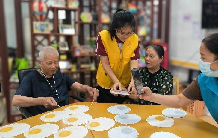 原本普通的蛋托,在长者手中变为艺术画布,每一笔都饱含着对生活的热爱与憧憬。长者们所创作的绚丽作品,令志愿者们赞叹不已,众人皆为能够参与其中而深感幸运。这些蛋托彩画不仅是艺术的结晶,更是长者们和志愿者们在心灵上的交流。透过蛋托彩画,仿佛能走进长者们丰富的内心世界,看到他们对现在的珍惜和对未来的期待。