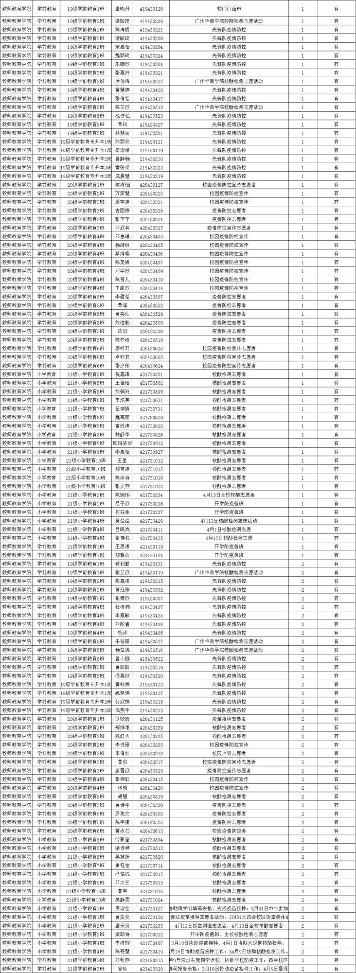 以上是对自本学期开学疫情防控工作中积极报名,表现优秀的同学给予通报表扬,希望广大师生以此为榜样,为疫情防控尽全力,积极传播正能量!