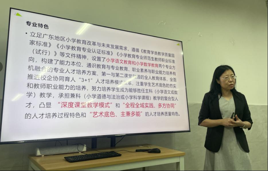 白云教育公司学前教育系主任魏敏和小学教育系主任林晖分别就各自专业的规模、团队队伍、专业课程以及专业特色等方面作了详细介绍。