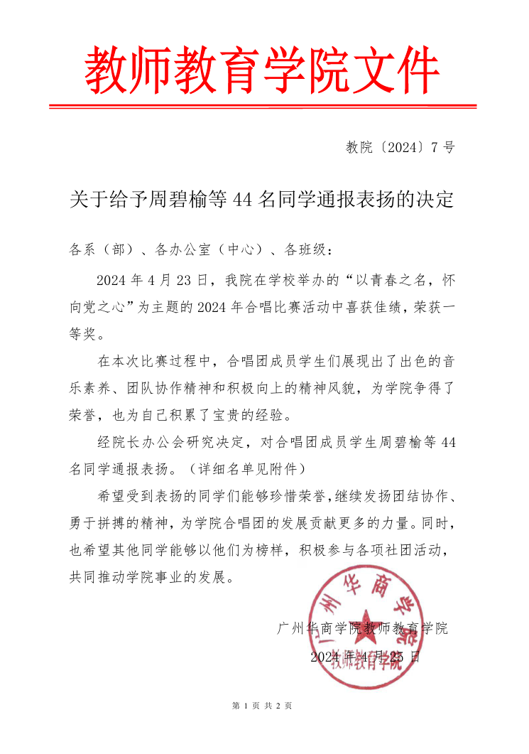 上一条:关于给予梁文景等老师通报表扬的决定 下一条:2024-3号关于给予张建波等老师通报表彰的决定