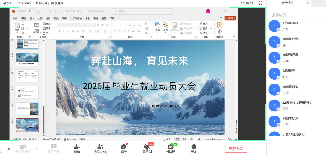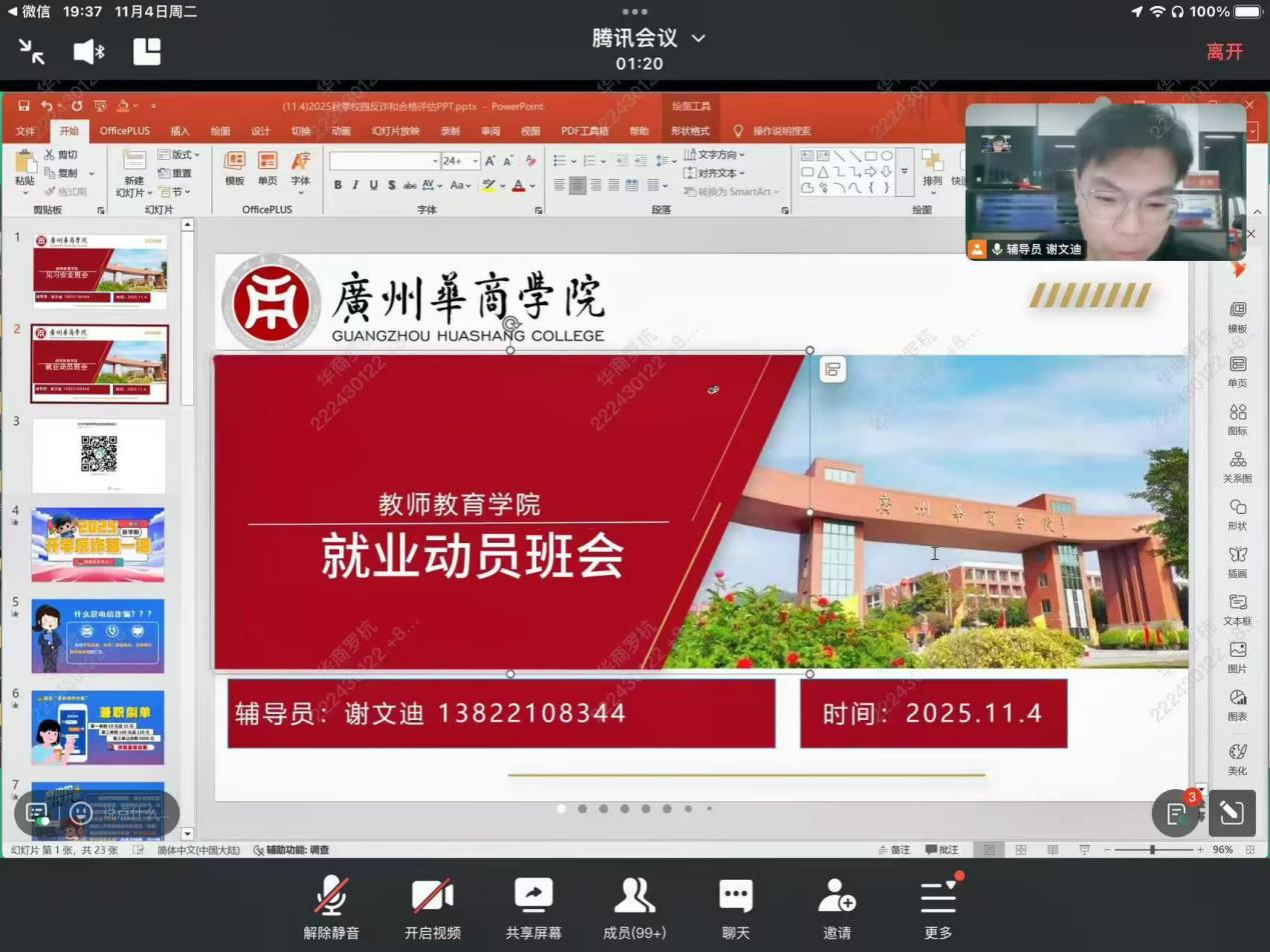 张雅芬老师则聚焦于毕业季的具体任务与行动路径。她提醒同学们在实习期间要明确责任,主动学习,不断提升专业素养;在毕业论文撰写上,要多与导师沟通,按时完成。她还鼓励同学们积极参加考公考编,善用数字化工具获取招聘资源,多参加公司组织的招聘会,在实践中发现更多机会。
