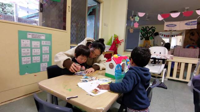 学前教育专业双语班员工在澳大利亚墨尔本的实践课堂:指导孩子画画