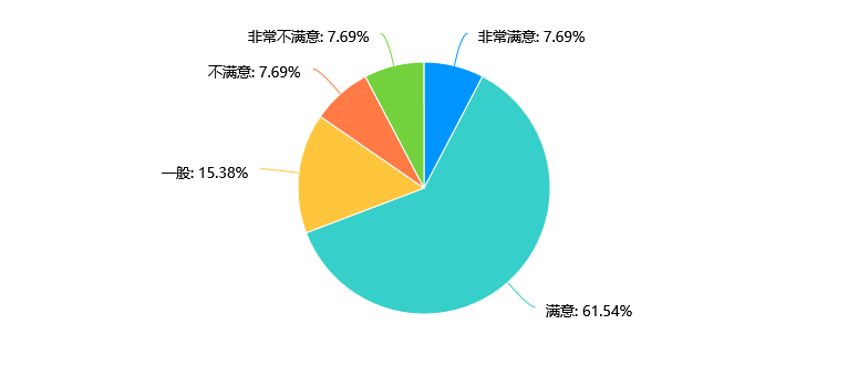 数据显示,在校生对公司提供的第二课堂、教学实践的满意度分布较为分散。满意和一般的比例相近,分别为38.46%;不满意和非常不满意的比例合计为23.07%,相对较低。需要在提供第二课堂和教学实践方面进一步改进,以提升满意度,比如通过增加课程多样性、提高教学质量、加强团队培训等方式来改善。