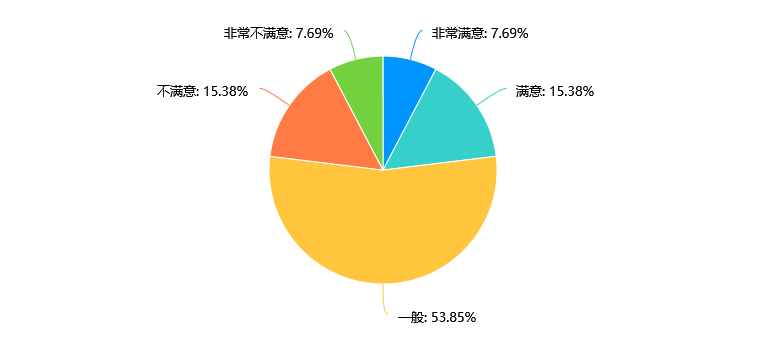 数据显示,53.85%的受访者对目前专业课程设置感到一般,而15.38%的受访者满意和不满意的比例相同。需要进一步在专业课程设置方面进行调查,了解员工的具体需求和意见,以提升满意度,具体调查如下: