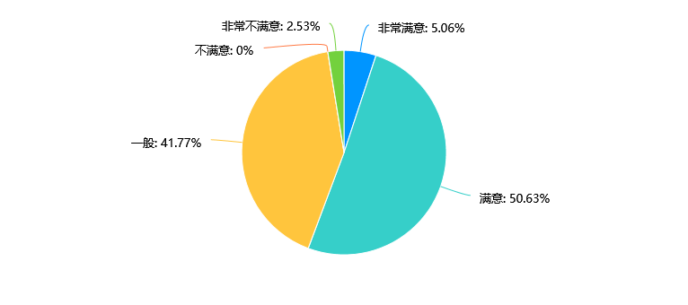 数据显示,大多数受访者对本专业的课程设置持满意态度,其中有58.23%的受访者选择“满意”,36.71%的受访者选择“一般”。仅有少部分受访者对课程设置不满意。公司需要继续保持满意度较高的基础上,根据一般满意和不满意的反馈,适当调整课程设置,以提升整体满意度。