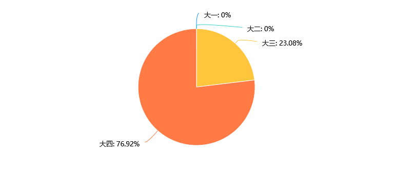 参与调查的所有人中,女性占比100%,男性占比为0%。在校生中男同学参与班级活动积极性极低,但从数量上看,并没有很低,其原因可能是男同学对人才培养质量不感兴趣、未来需要充分宣传人培的重要性。