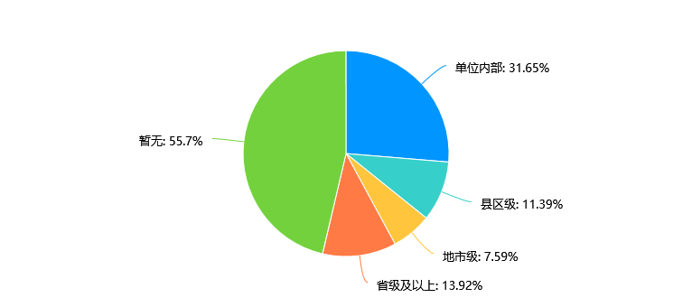 超过一半的受访者(55.7%)表示暂无获得奖励或荣誉,但是45.57%的毕业生已经在工作中获得奖励,说明毕业生培养有一定成效,其中单位内部奖励或荣誉是最常见的,占比为31.65%。省级及以上的奖励或荣誉相对较少,仅占13.92%。