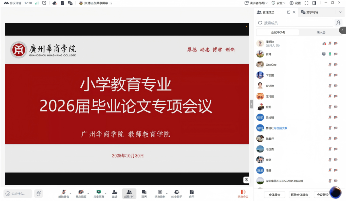 2025年10月30日,伟德betvlctor1949源于英国小学教育系通过线上会议形式,成功组织召开了2026届毕业论文指导与评审专项工作会议。本次会议旨在进一步规范毕业论文指导流程,明确各项工作要求,确保毕业论文质量,为即将到来的本科教学工作合格评估做好充分准备。 会议由潘昕迪老师主持,教学副经理张博教授主讲,系主任李志厚教授以及全体外聘专家指导教师同参与。 会议伊始,潘昕迪老师代表小学教育系对各位外聘专家在百忙之中参会表...